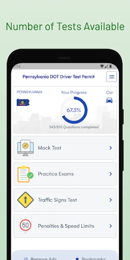 Our Pennsylvania PA Driver Test Permit app , is easy to use and accessible from anywhere, on any device. You can practice on your phone, tablet, at home or on the go. And with our free and unlimited tests, you can practice as many times as you need to feel comfortable and confident for the real DMV Written test .