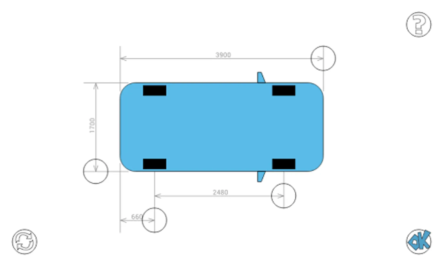 Basic exercises are available for training on the test field, such as parallel parking, reverse into parking bay, limited-space U-turn, the snake, etc.; whereas, the users can also upload their own custom diagrams for training, including hand-drawn, thus allowing them to solve the most intricate tasks.