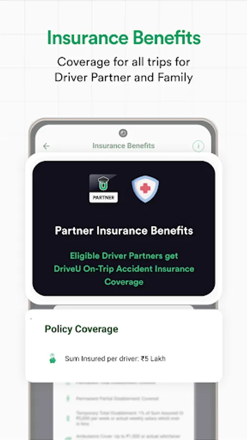 Your safety is important for DriveU. We provide personal accident insurance with benefits covering child education, hospitalisation and EMI protection