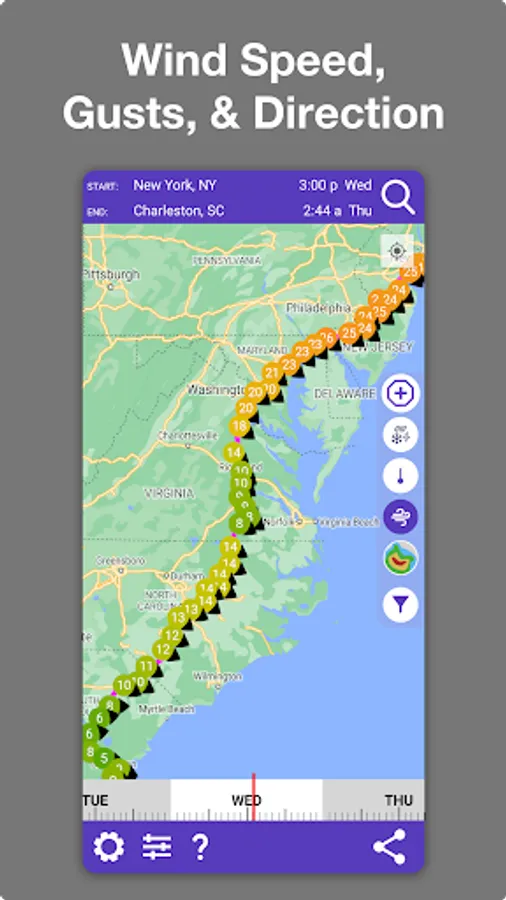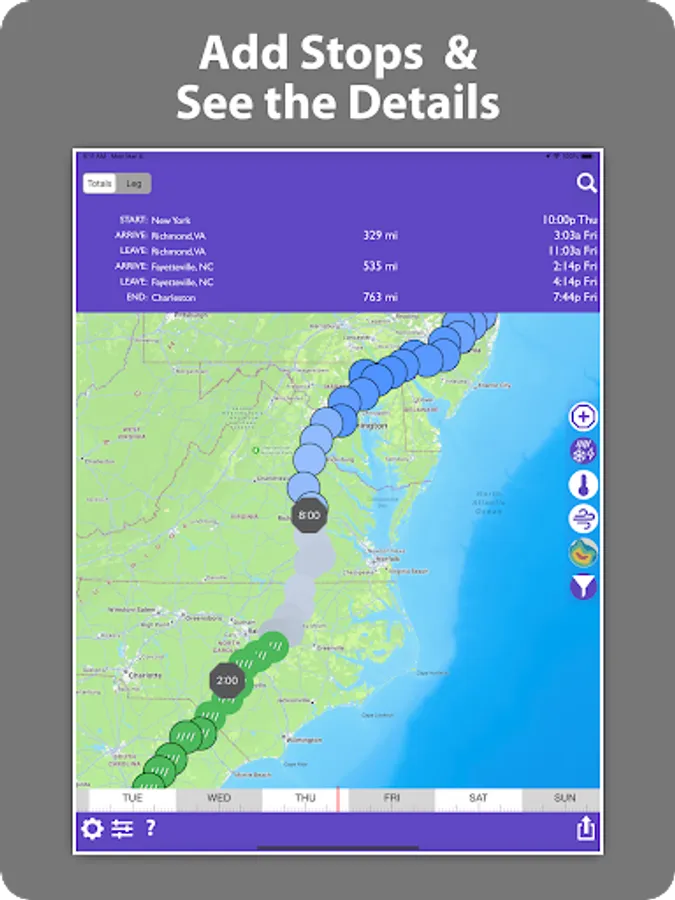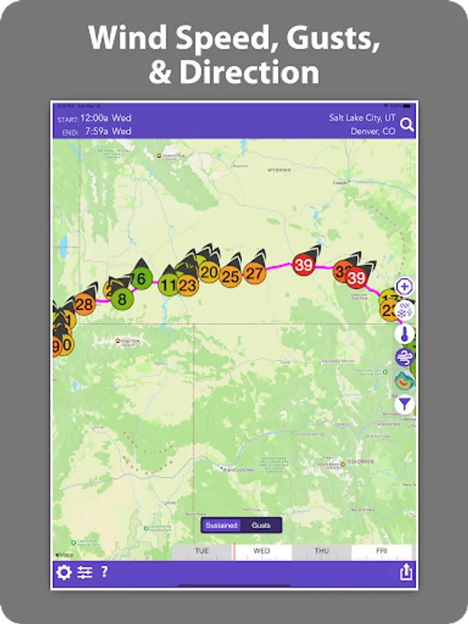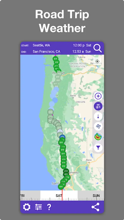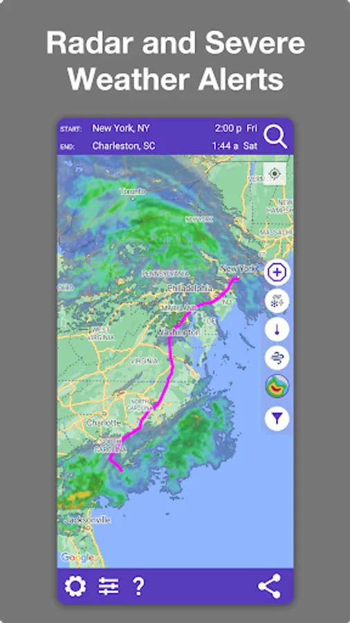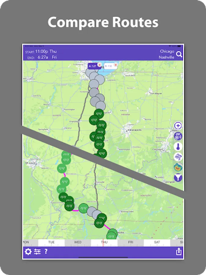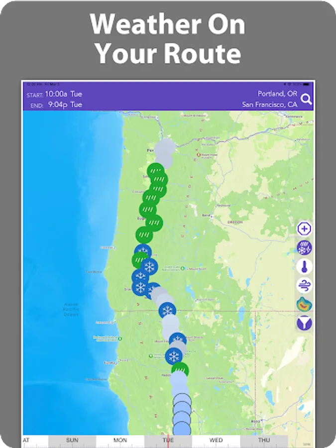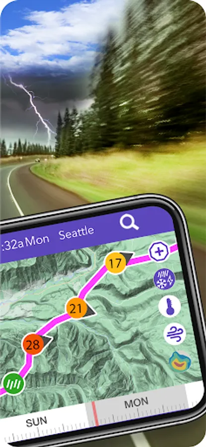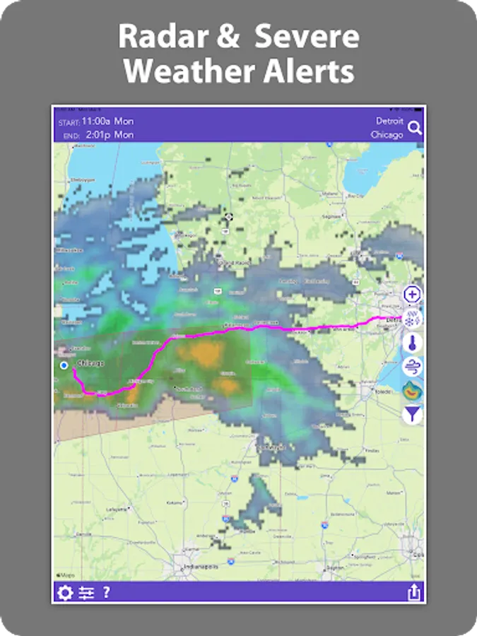 Drive Weather takes the guesswork out of figuring out when and where the bad weather is! It shows the forecast only on your route based on departure time. The Drive Weather app presents weather, wind speed and direction, temperatures, and radar.