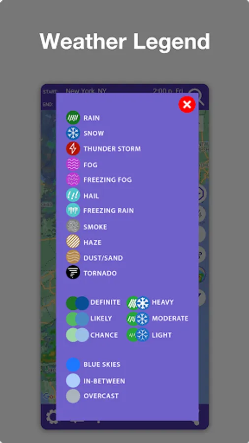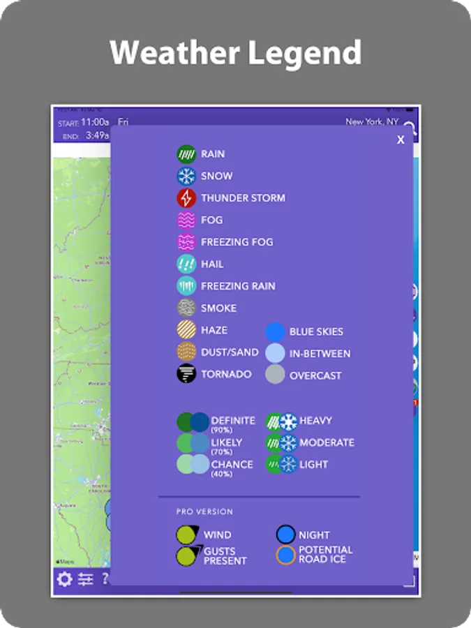 Drive Weather's unique difference is the huge volume of weather information it communicates easily and instantly. This provides comprehensive information needed to make very informed decisions on when what route to take on a road trip.