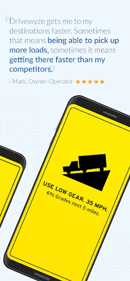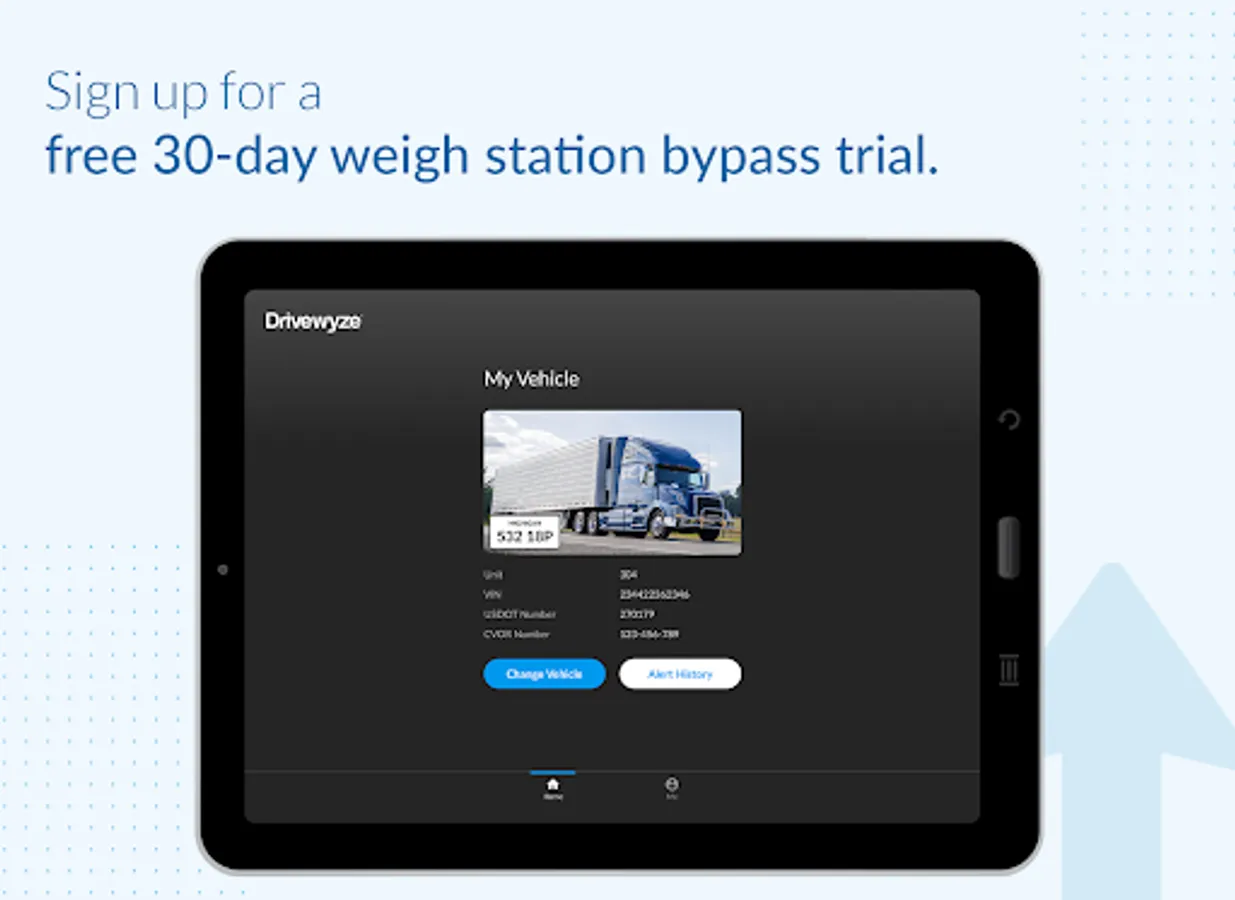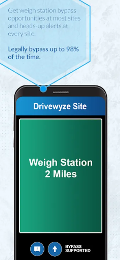 The Drivewyze app gives you access to trucking tools to run your vehicles more efficiently, bypass weigh stations (Free 30-Day Trial), and receive alerts before hazards on your journey. It provides access to Drivewyze® PreClear weigh station bypass and all users have access to free proactive safety notifications, including real-time congestion, low bridge warnings, high rollover locations and more. These notifications can display even if you are using navigation.