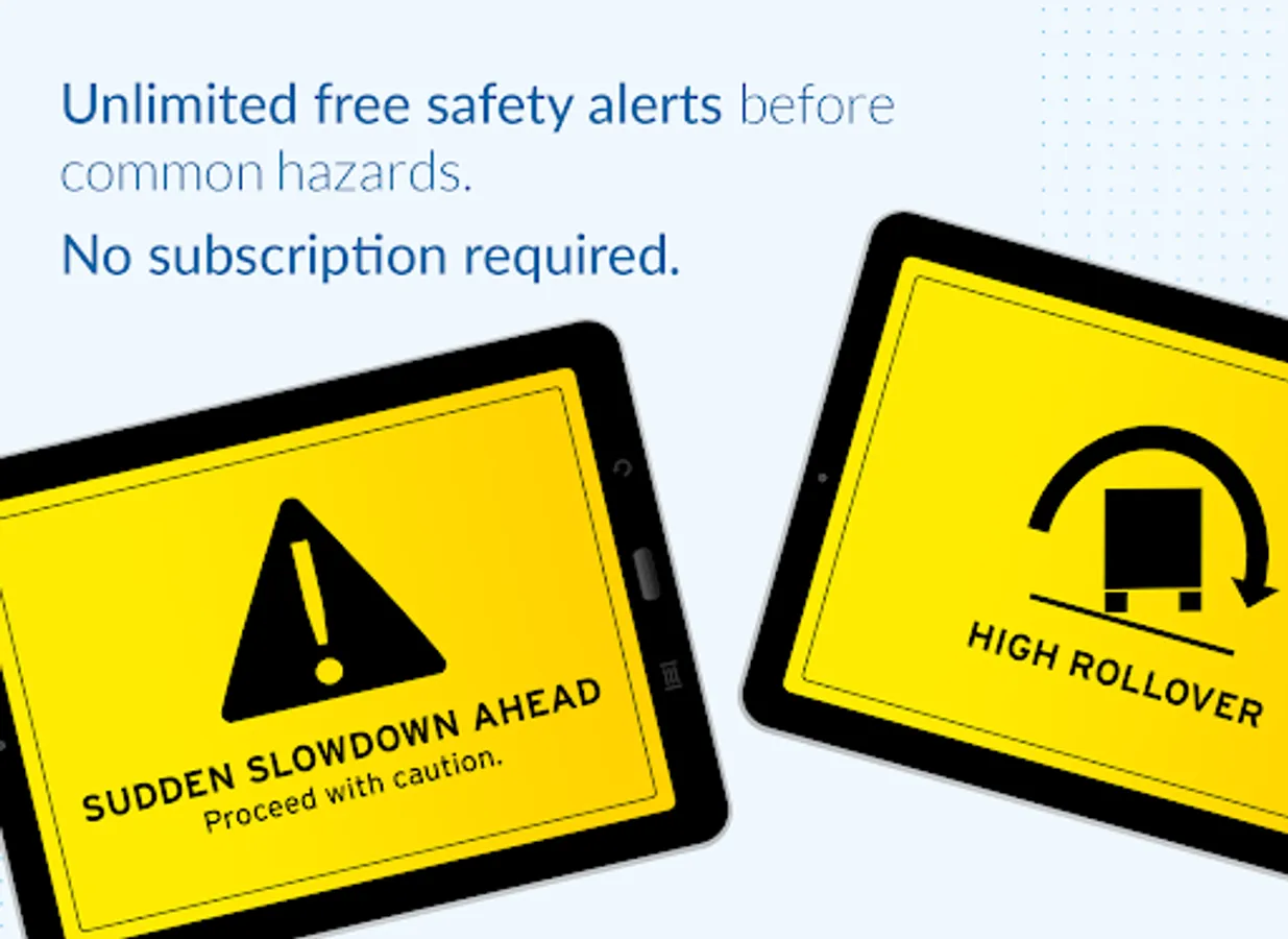 Available for all users is a library of proactive safety notifications that keep you aware of the dangers on your route before they happen. Avoid common hazards with: