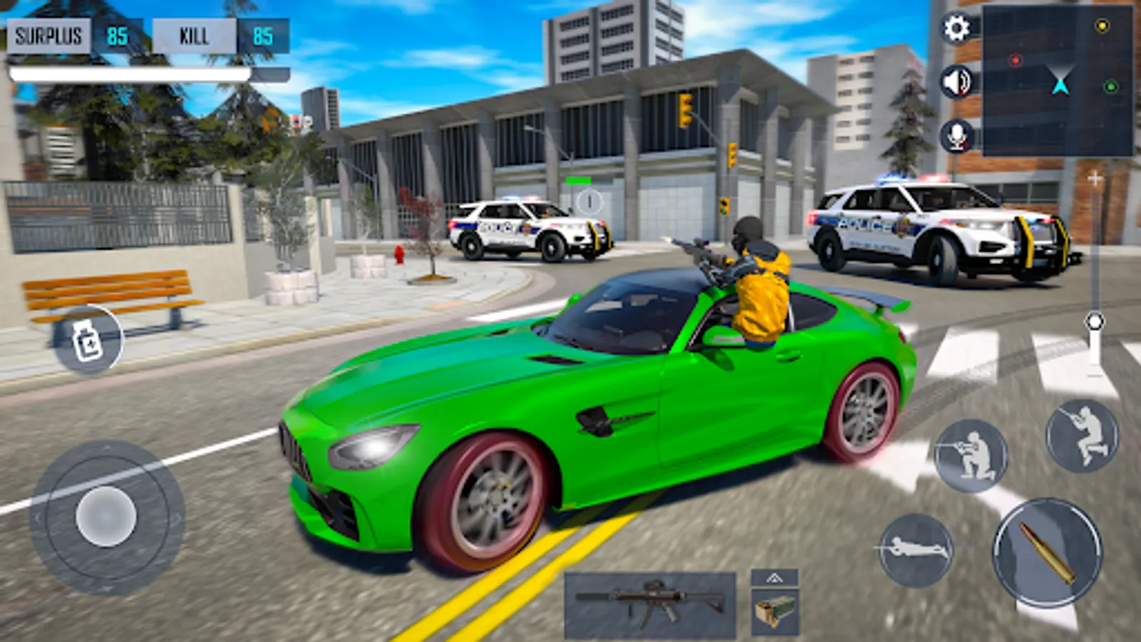 Live your criminal life on the city roads and don’t let the cops eliminate or arrest you back. You will have many weapons and cars to protect you and will help you in escaping from the police chase.