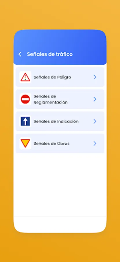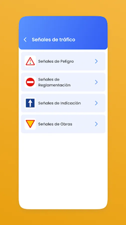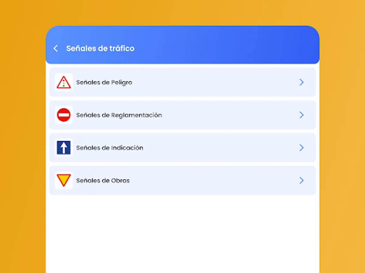 3) Traffic signs: Do you know which is the sign that indicates priority over another vehicle on the same road? With our app you can learn all the necessary traffic signs to pass the theory and get your driving license