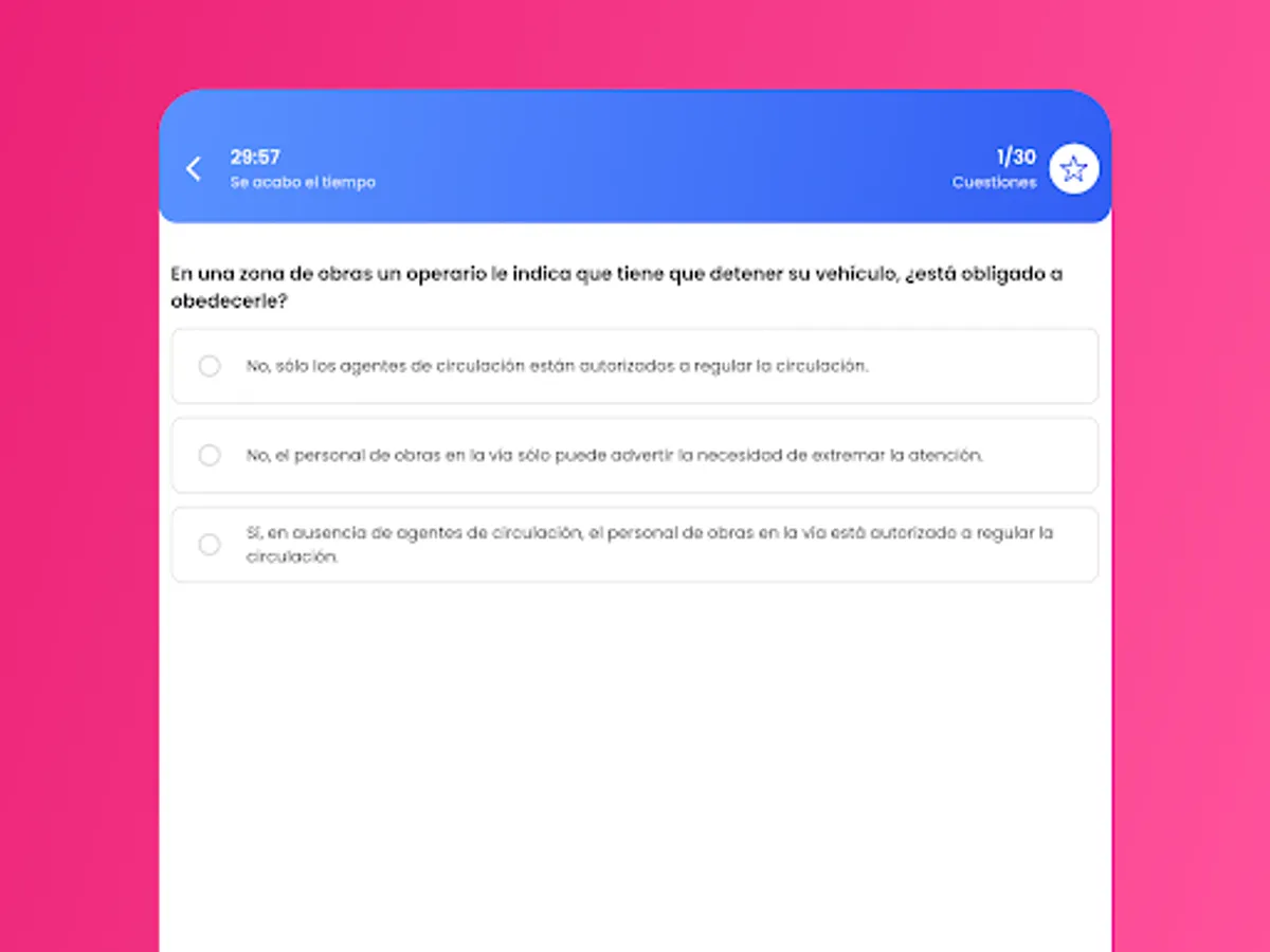 2) Exam simulation: take a simulation of the theoretical exam to get your B permit and show that the DGT Test is successful. But don't trust yourself! there is a stopwatch like in the official theory exam!