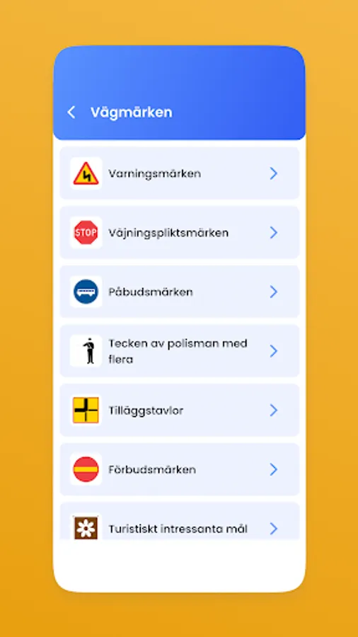 Knowing traffic signs is a must for you to get your B driver's license. By practicing traffic signs with the help of our app, you get all the knowledge you need to pass the driving test.