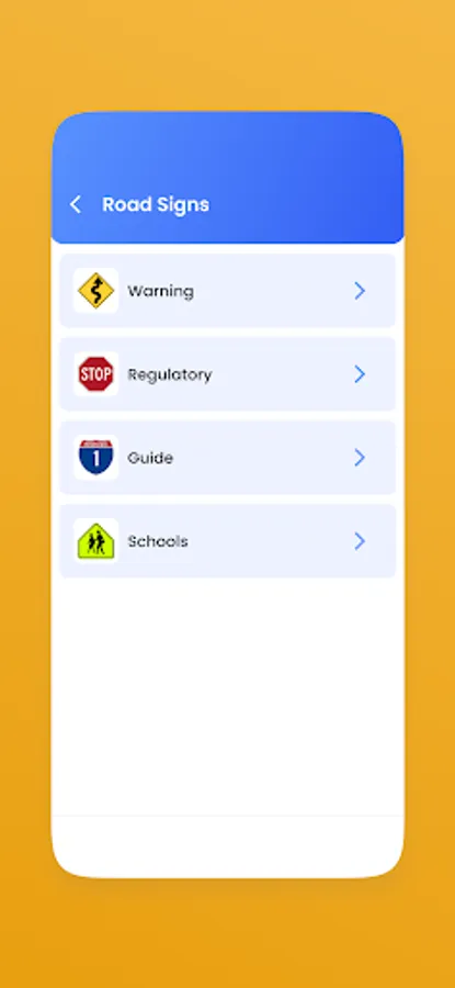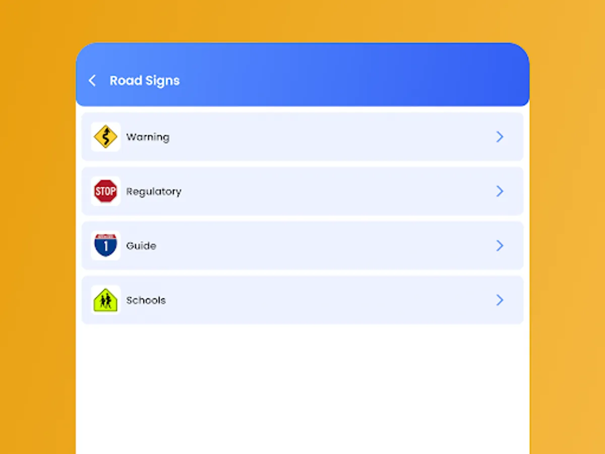 3. Road Signs – a full list of all relevant road signs, by categories.