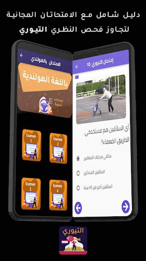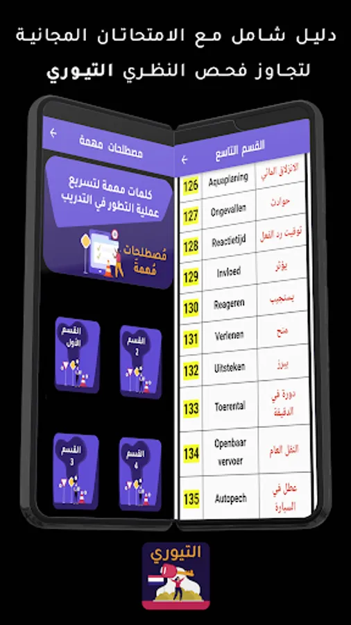 Due to the importance of obtaining a driver's license in the Netherlands at this time, we have created the Dutch driver's license exam application, through which you can learn everything you want in the Turi exam in the Netherlands from the comprehensive rules and all traffic signs in addition to the most important translated Dutch terms for the Turi with hundreds of exam models Annotated in Arabic and Dutch
