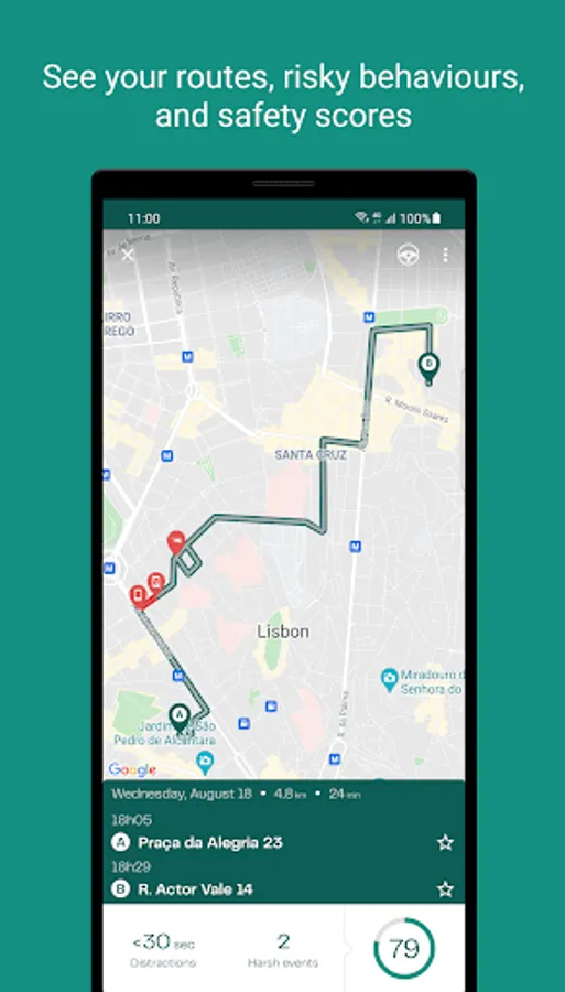 With Drivit you can record your trips automatically and in the background and know how safe you are on the road.