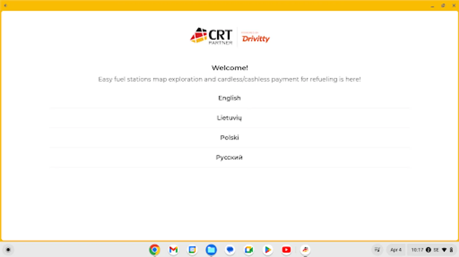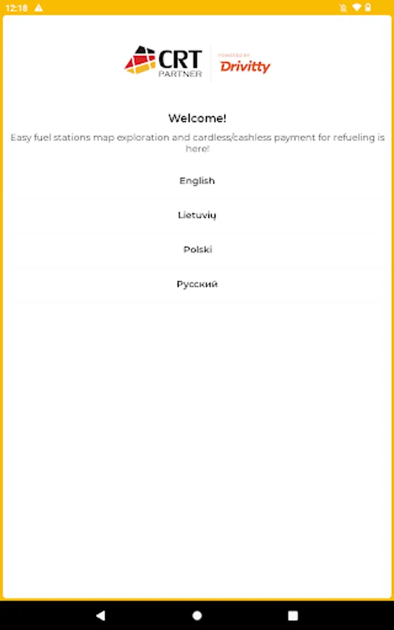 A Game - Changing solution for Transport companies! If you want… To make cardless payments for refueling, you need to authorize within CRT Partner app. Get username and password from your CRT Partner manager beforehand.