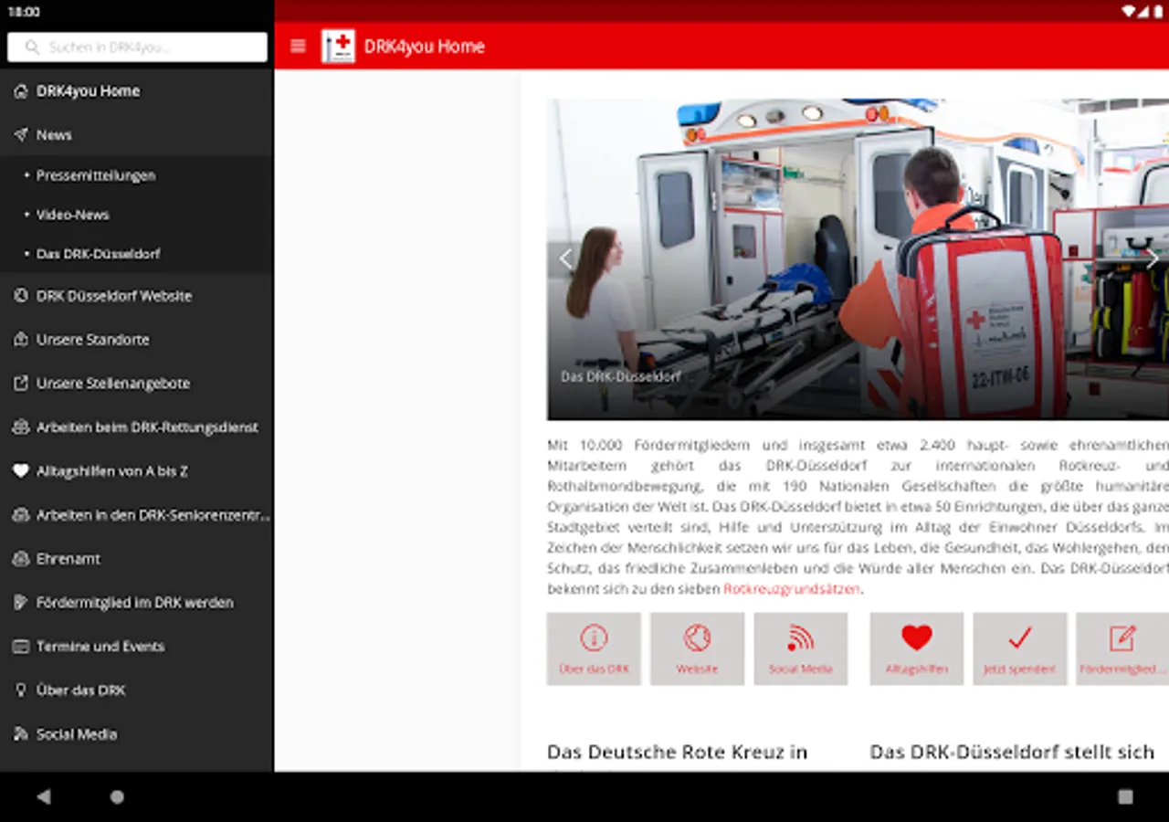 DRK4you is the free app of the DRK-Düsseldorf, with which you can get information anytime and anywhere about the important everyday aids that the German Red Cross offers you in the state capital. Always be up to date, be the first to benefit from important news, the latest videos, helpful links, dates & events related to your DRK!