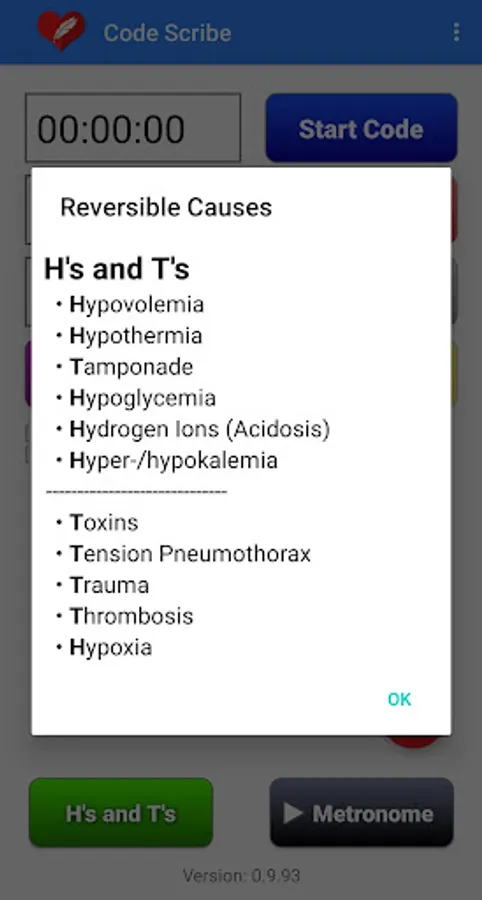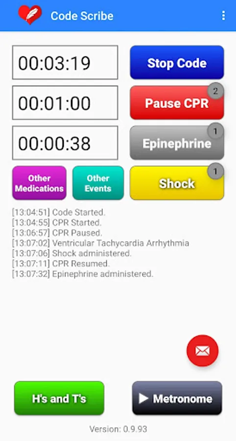 An app designed to help run a code blue as a team leader or as a logger. Timers display time between CPR cycles and medications. Log times of medication administered and other events during a code. Use this app to help manage and document codes more effectively.