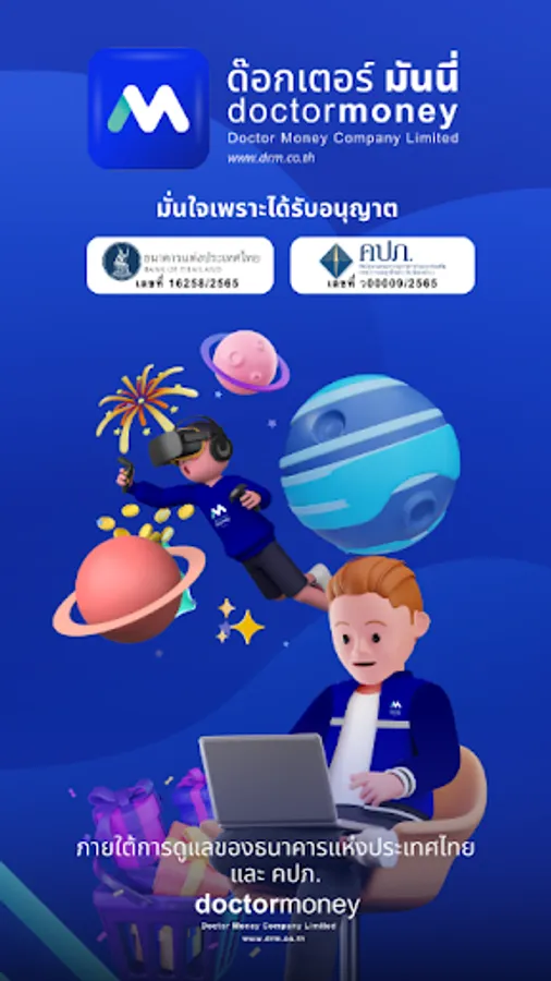 Dr.Money is an innovative financial technology platform to provide online financial services such as applying for loans and purchasing non-life insurance. Dr. Money's operations are under the supervision of the Bank of Thailand and the Office of Insurance Commission (OIC). Dr. Money is committed to developing highly secure technology. Users can apply for loans or buy our products and can easily check every step of the approval process themselves. The service interest rate is not more than 24% per annum according to the policy of the Bank of Thailand. Users can also report complaints arising from our services through our platform.