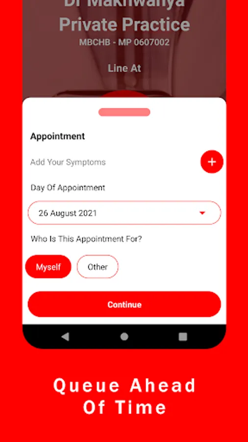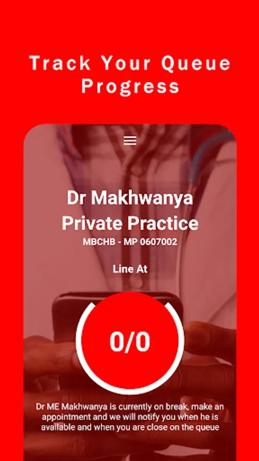 This app allows you to queue for lines at dr makhwanya's private practice, helping you manage your time, without having to wait for long hours in the doctors waiting room