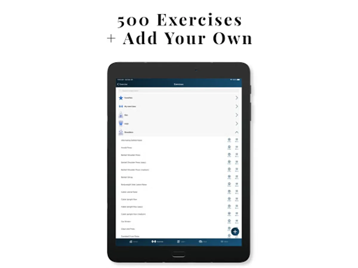 - Add your own exercises and workouts