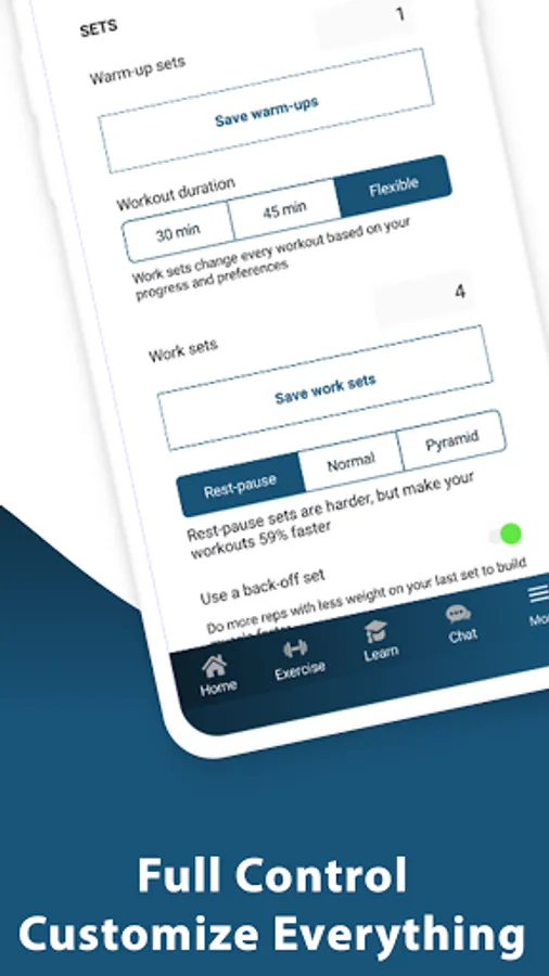 - Customize reps, sets, rest...