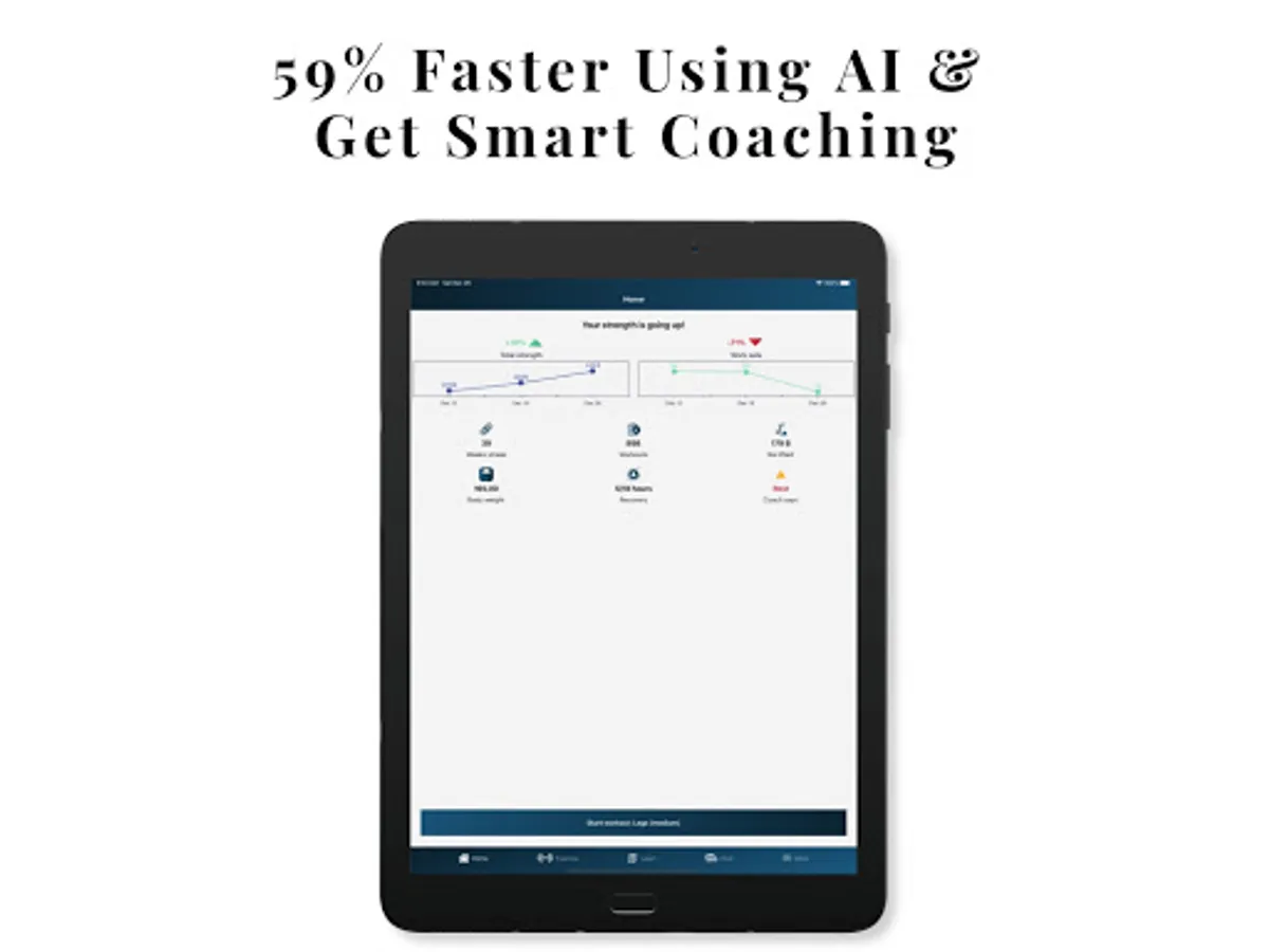 It gets you in shape fast, like a personal trainer. But it's 59% faster, evidence-based, and always up to date. It automates almost everything, and guides you through the entire process. It's designed to make training a rewarding experience, simple, and fun again.