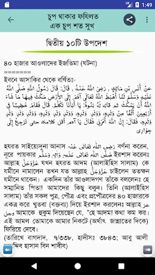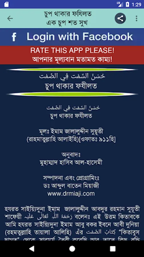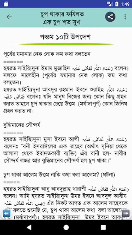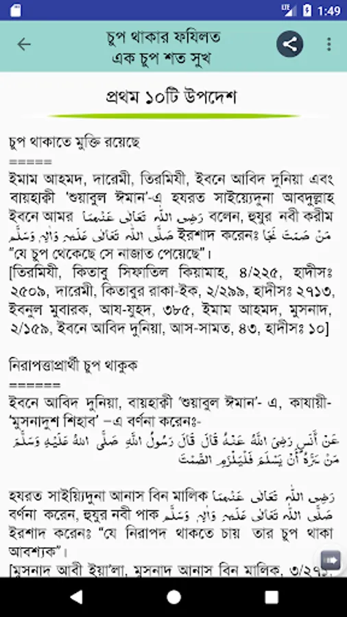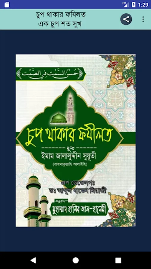 চুপ থাকায় কত উপকার তা এই কিতাবটি পড়লে বোঝা যায়। ইমাম সুয়ূতী রাহমাতুল্লাহি আলাইহি লিখিত কিতাবের এপ এটি। "চুপ থাকার ফযিলত" বা অন্য কথায় "এক চুপ শত সুখ"।