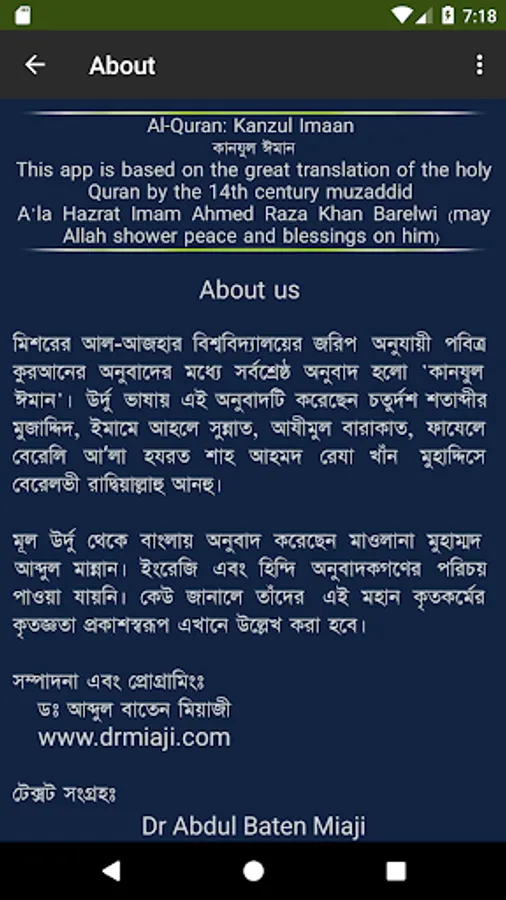Mawlana Muhammad Abdul Mannan has translated Kanzul Imaan from original Urdu. This app is from his translation. We have added only the translation of the holy Quran excet tafseer. We will very soon add tafseer as well. May Allah accpet us all!