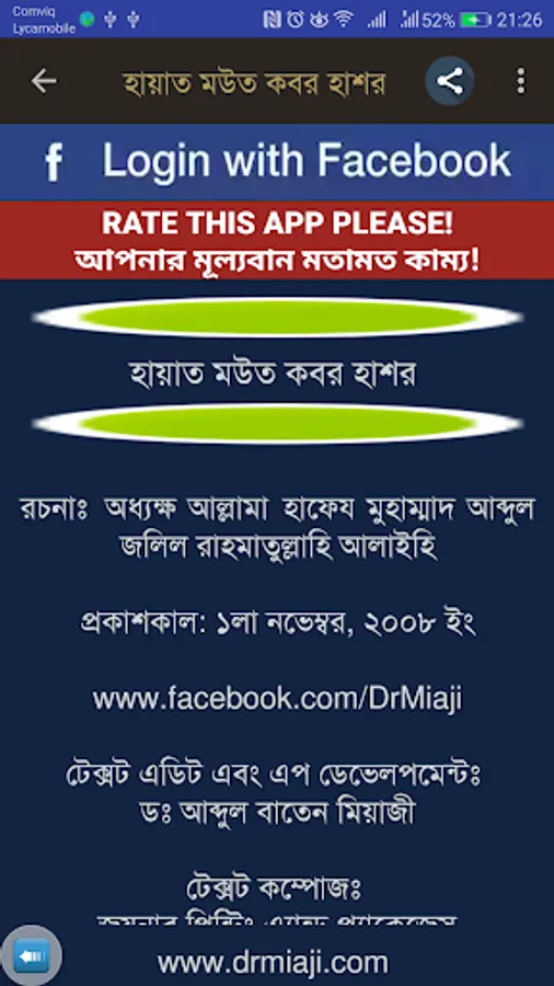 Unrivaled book "Resurrection Hyatt mauta grave." The aim is to serve the Holy One. The journey of life is temporary. Hereafter is a real address. So the next long trip from start to finish is a detailed description of the subject matter of this book, in the light of the Quran and Hadith. Later life and death of the Qur'an and the Hadith to combine an excellent book "Resurrection Hyatt mauta grave." Read and encourage others to read it.