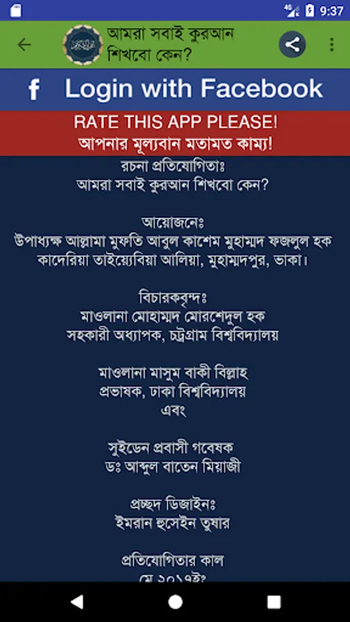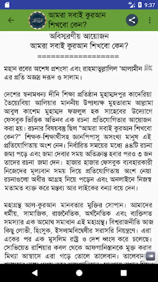 Muhammadapura renowned religious institution in the country, Mr. Kader taiyyebiya Alia muhatarama Principal Allama Muhammad Abul Kasem Fazlul Huq wrote a novel based on the initiative of the Facebook competition was held. Theme was "Why are we all learn the Quran?" Teachers and students took part in the competition, numerous people learner. 44 were submitted within the prescribed period, and to submit the composition after the lapse of 3 to submit their works. Thousands of Facebook users took part in the competition with their precious time with keen interest, read the texts and online comments and views expressed by the flood was like.