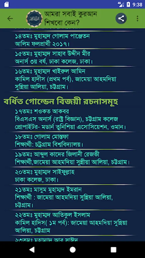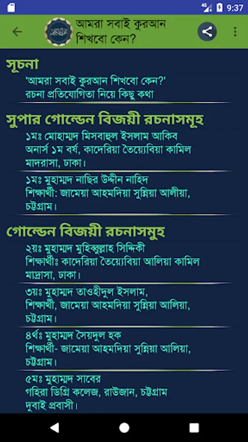 The main aim of the competition was to divert our religious holy Al-Quran is to make people interested in the Quran. As a result, the teen threw the Quran, the Quran and understand the need to learn karanoi aim of this competition is unique.