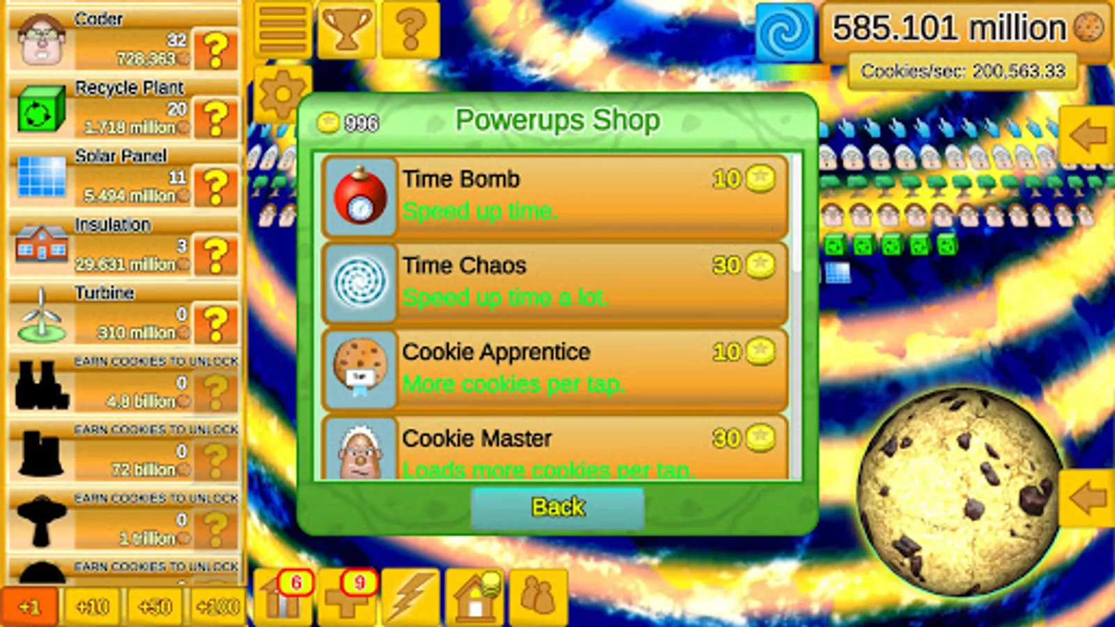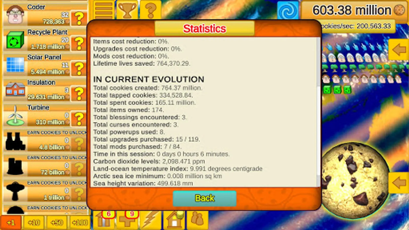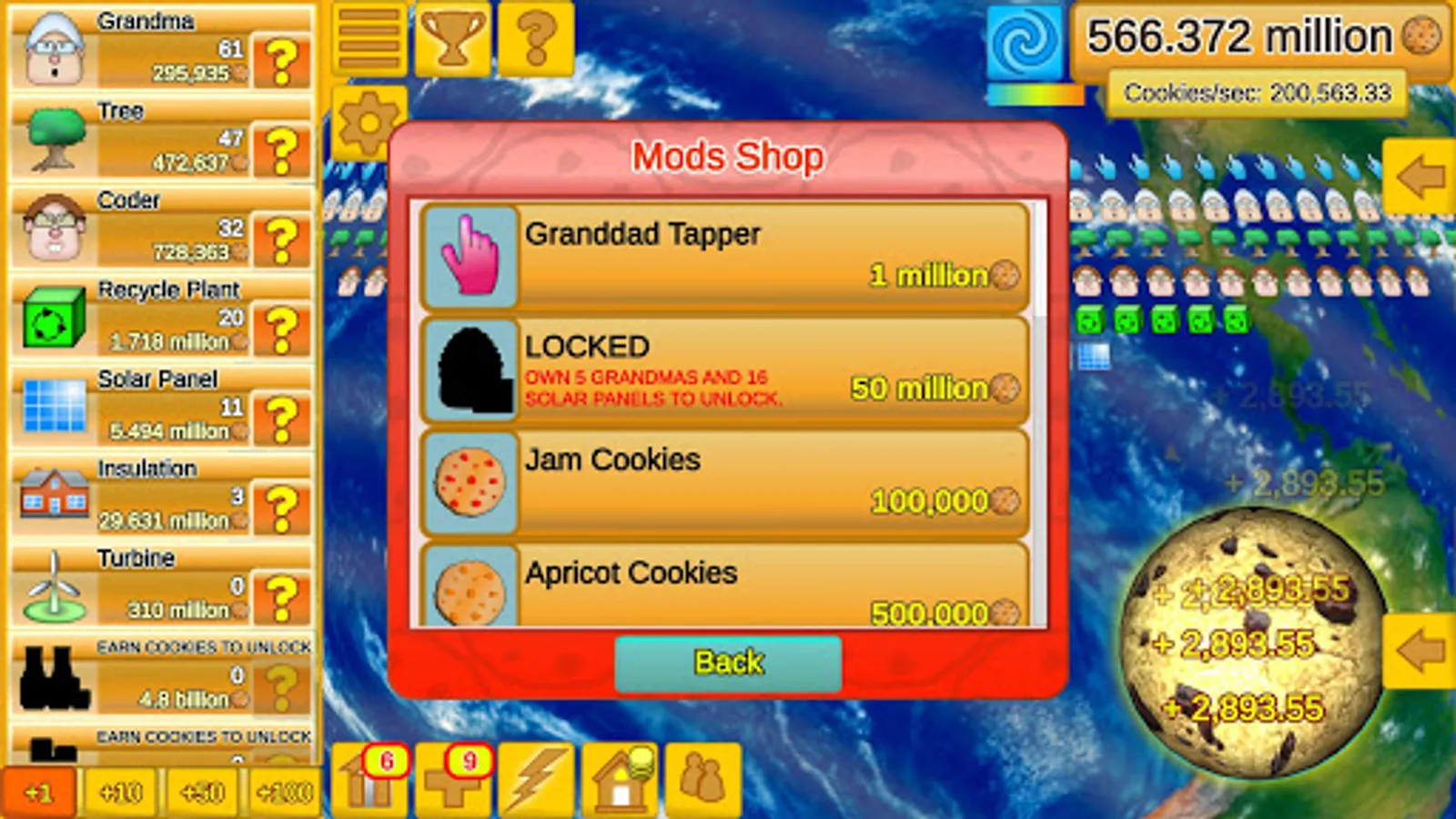 - Use cookies to buy over 200 upgrades and mods to speed up carbon reduction and cookie production.