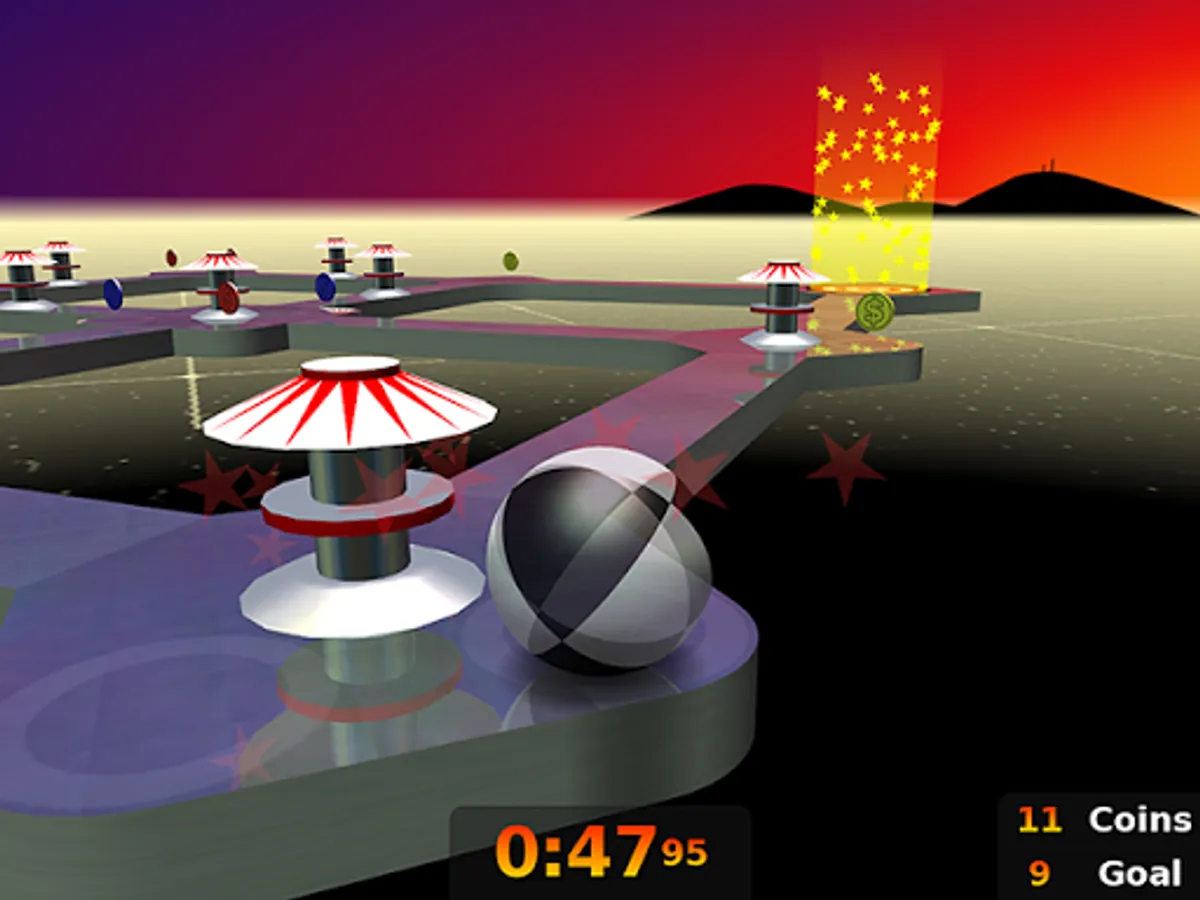 Neverball has you guide a rolling ball through dangerous territory. Balance on narrow bridges, navigate mazes, ride moving platforms, and dodge pushers and shovers to get to the goal. Race against the clock to collect coins to earn extra balls.