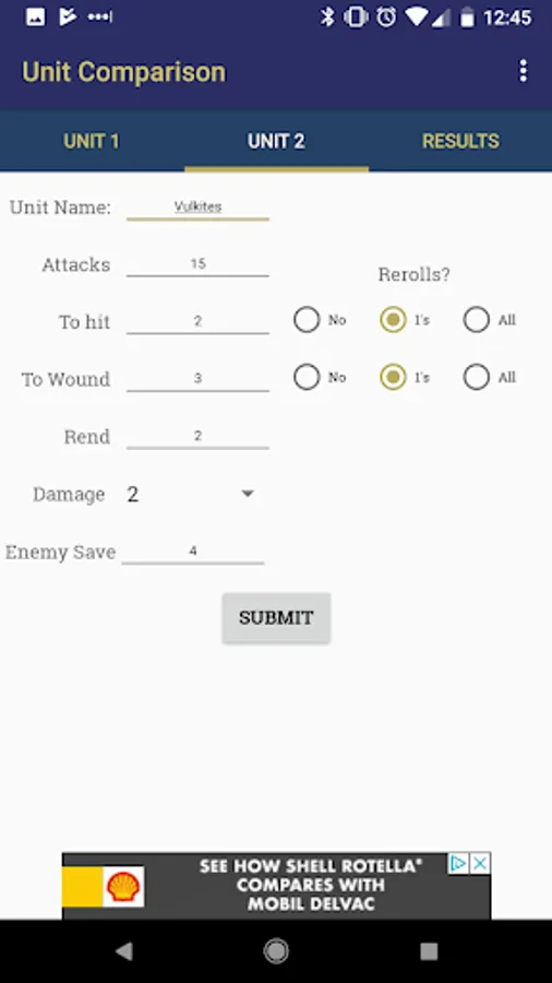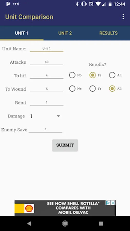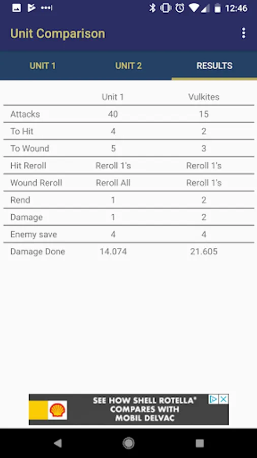 For creating and storing units upgrade to the pro version here: https://play.google.com/store/apps/details?id=com.drofnum.mathhammerpro