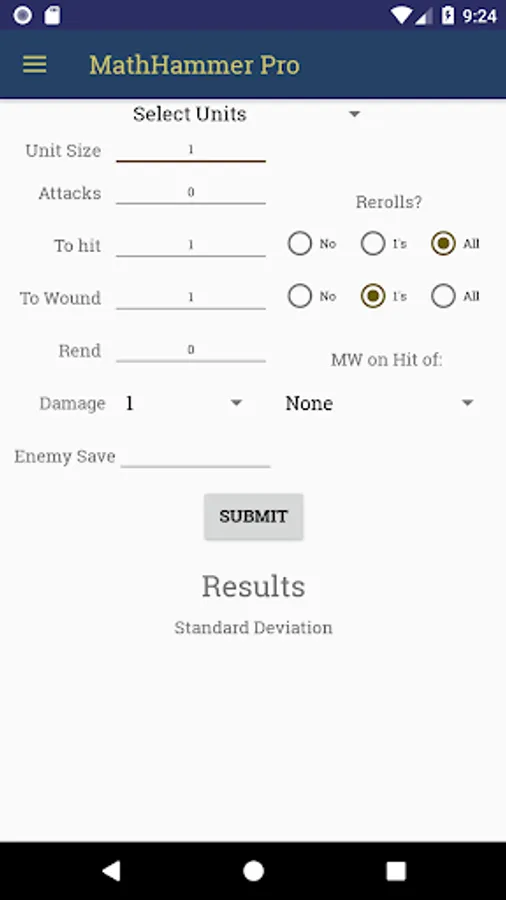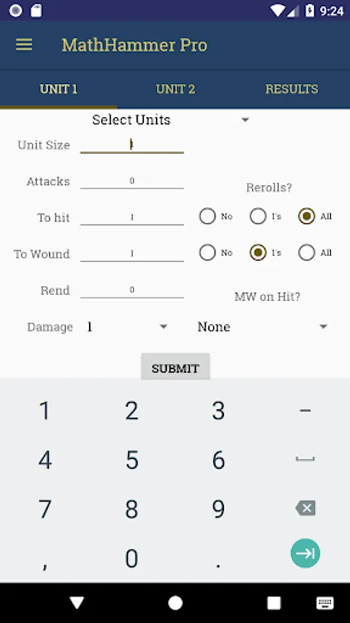 A theory crafting app for Warhammer Age of Sigmar. Enter unit stats and the app will calculate the average damage for that unit. Great for theorycrafting or for trying to decide between those two offensive units you love but can only take one of!