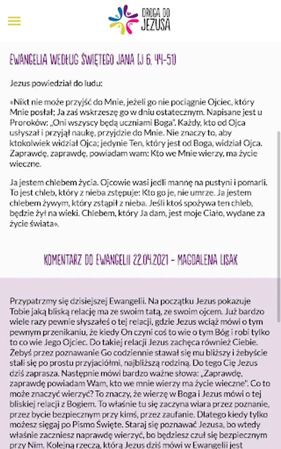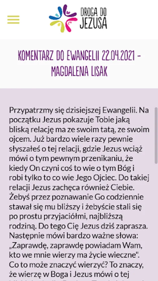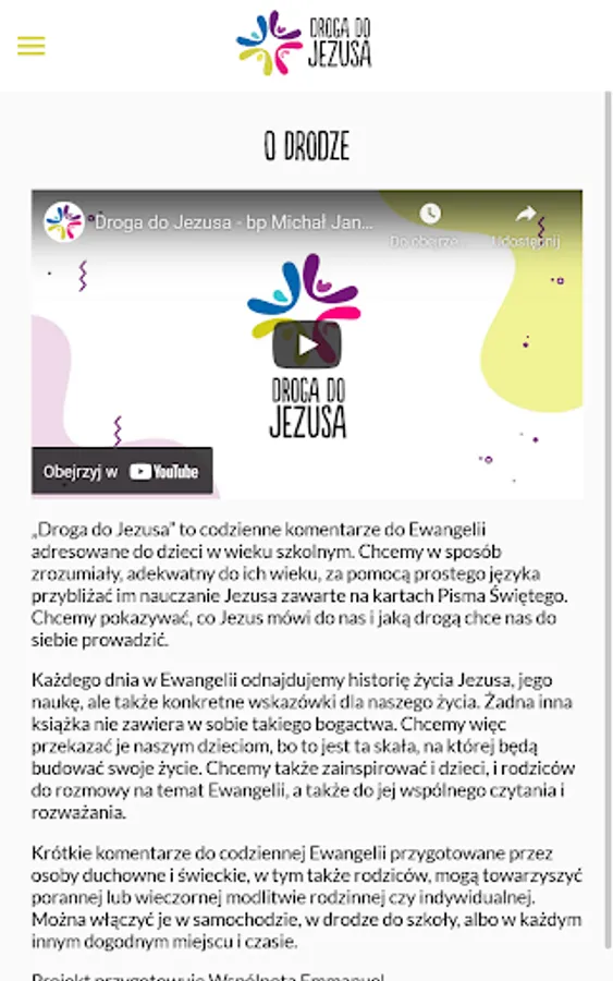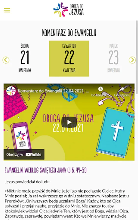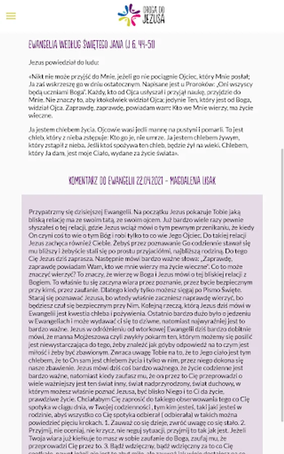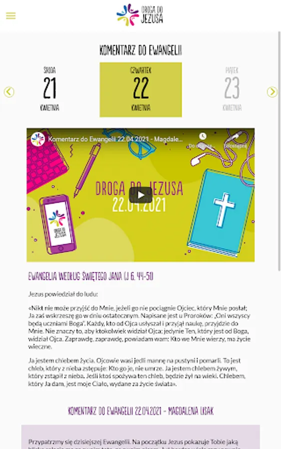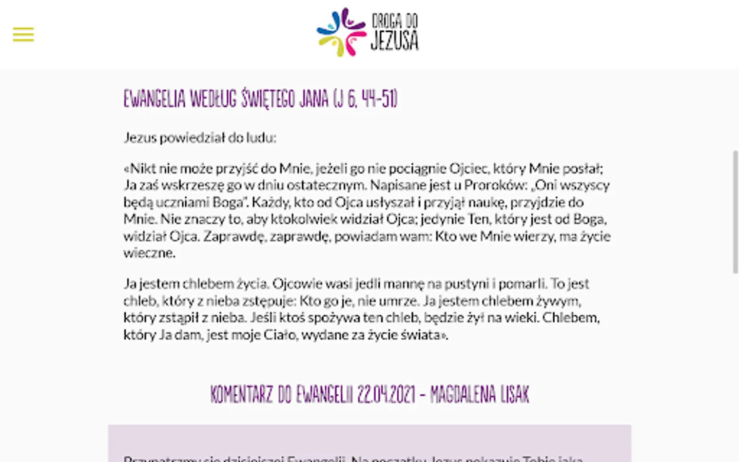 "The Way to Jesus" is a daily commentary on the Gospel addressed to schoolchildren. We want to understand the teachings of Jesus contained in the pages of the Holy Scriptures in an understandable way, appropriate to their age, using simple language.