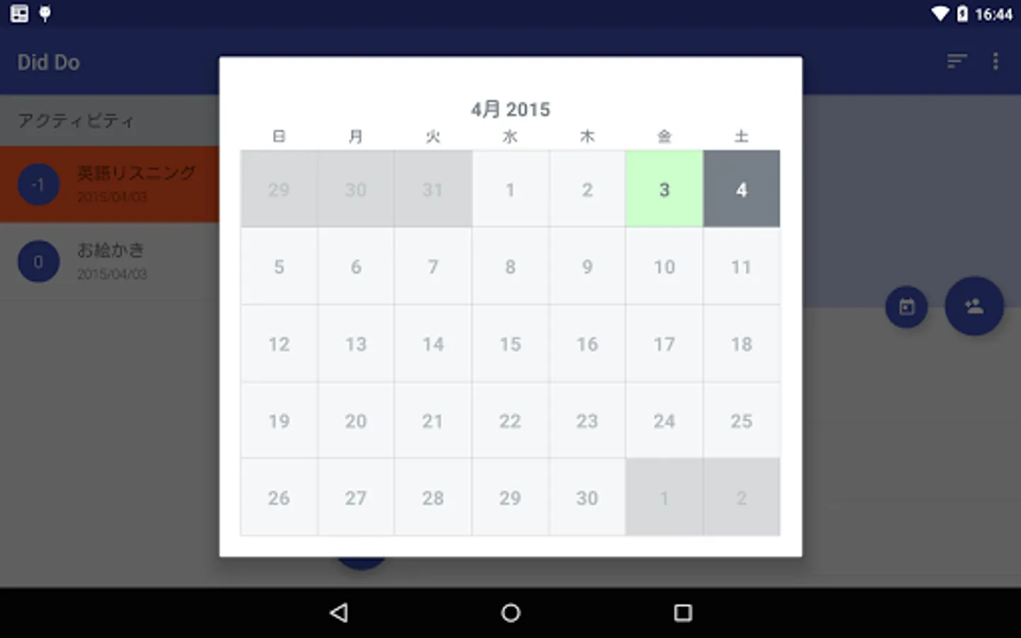 Operation check terminal: Nexus4 (4.3), Nexus5 (4.4)