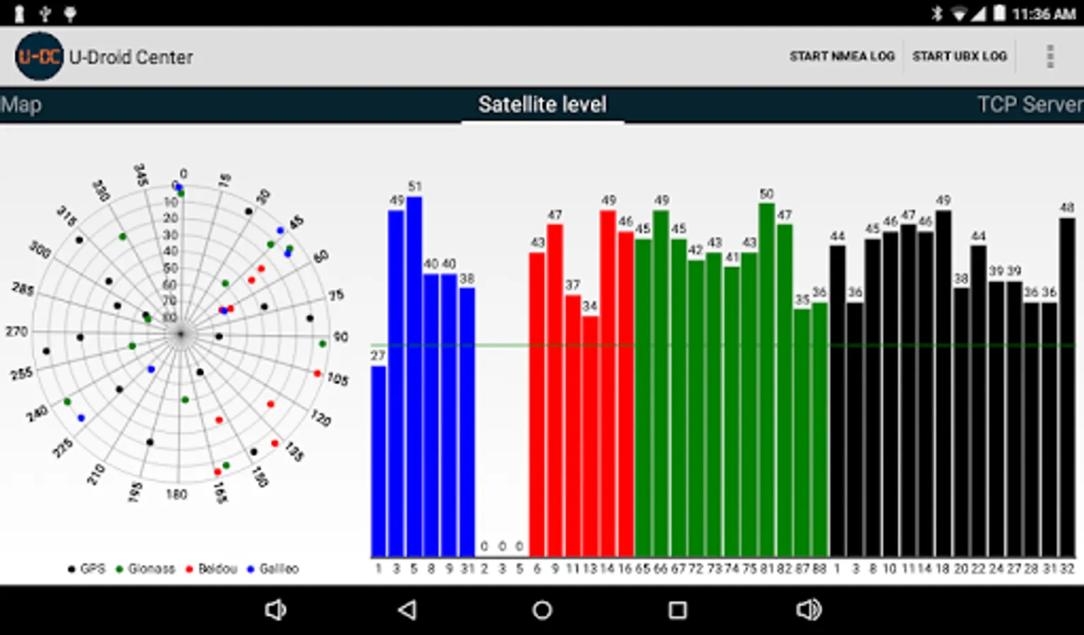 This application allows you to work with navigation chips directly, without the help of navigation services Android. Connection to the navigation chip is possible via USB, Bluetooth and RS232 (Uart) port, as well as to the built-in motherboard chip u-blox®. To connect the USB navigation receiver, your smartphone must support USB Host OTG. To connect to the chip on RS232 or to the built-in chip in most cases it is necessary to have Root rights.