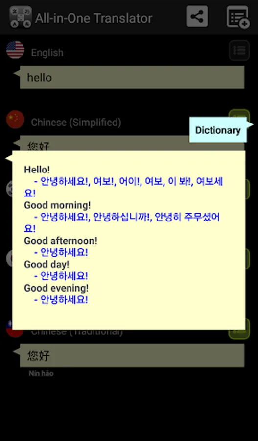 ▪ Use english Dictionary mode to translate words or sentences for all languages