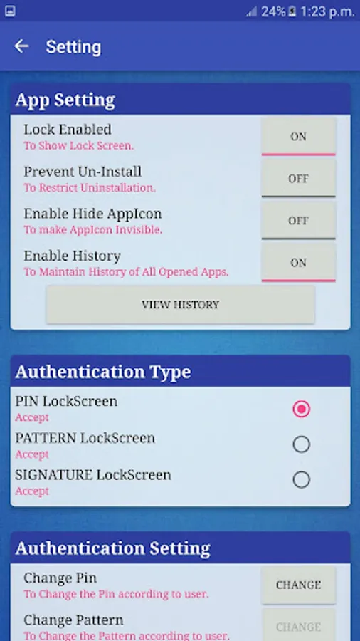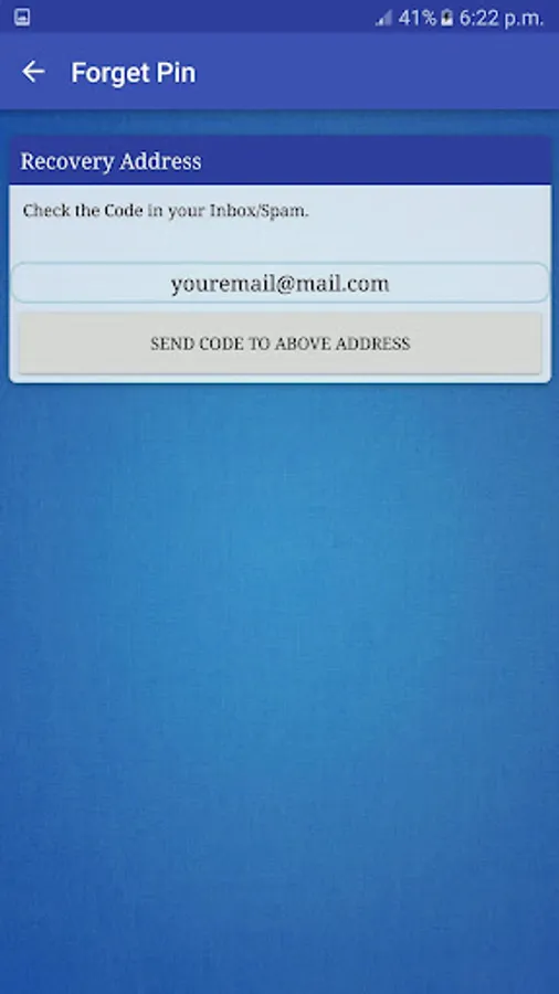 click on "send code to above address" applock will send your 4 digit pin to your email,collect applock pin from your email and enter now you can reset your pin pattern and signature.
