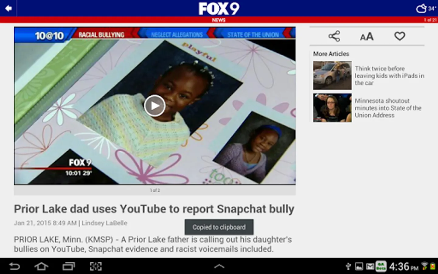 News doesn't wait, why should you? Take FOX 9’s award-winning news everywhere you go! Our app connects you with top stories in and around the Twin Cities — complete with breaking news alerts, live video, and real-time weather forecasts for Minneapolis or St. Paul.
