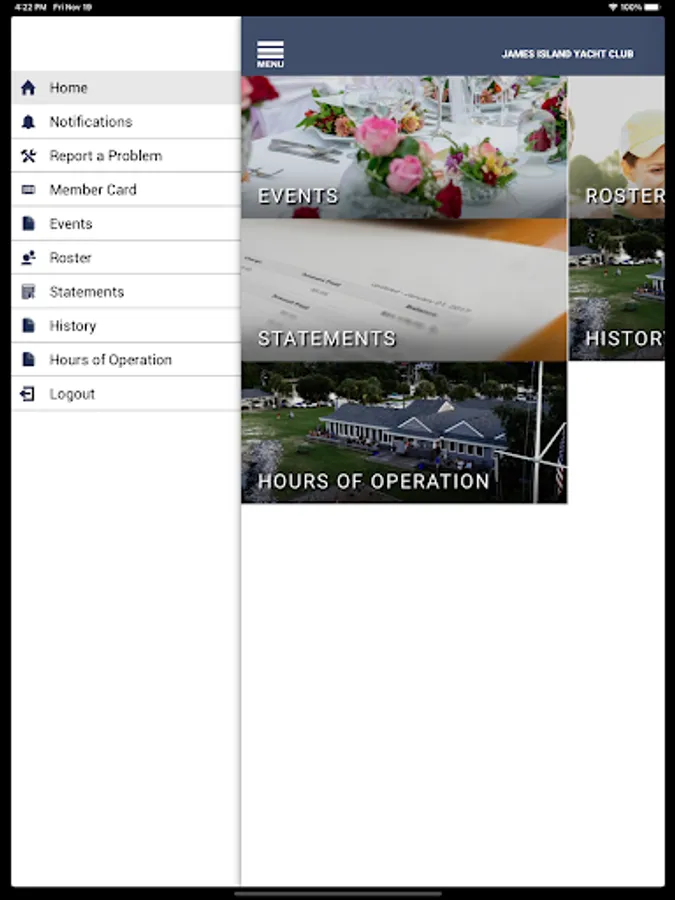 For James Island Yacht Club Member Only. Delivering the ability to connect the JIYC to your mobile device. The JIYC app provides members with the ability to view their Statements and make Event Reservations. Use the Roster to connect with other members and receive notifications on upcoming club events, all by the way of your handheld or tablet