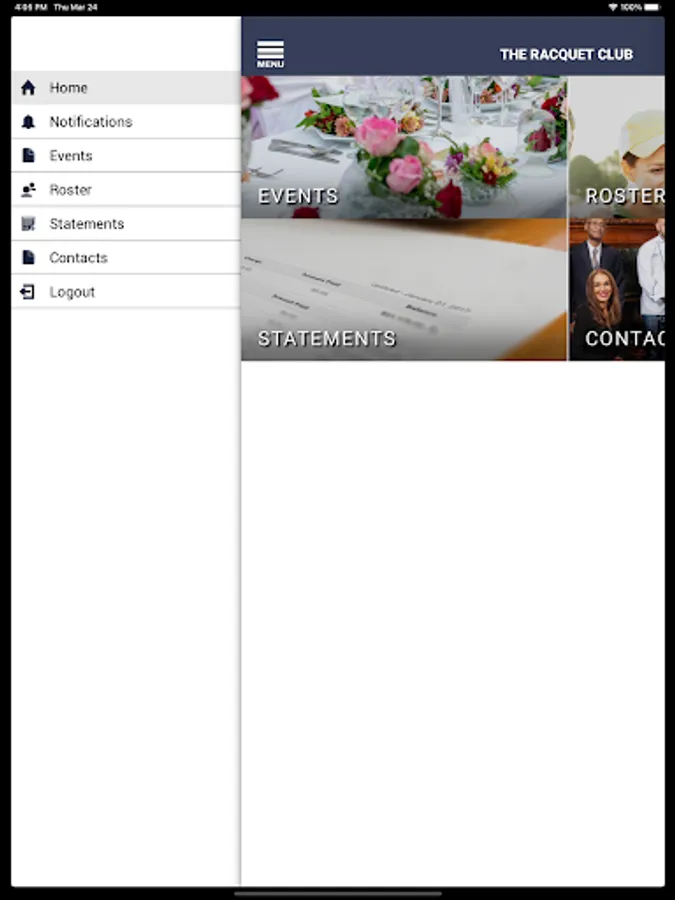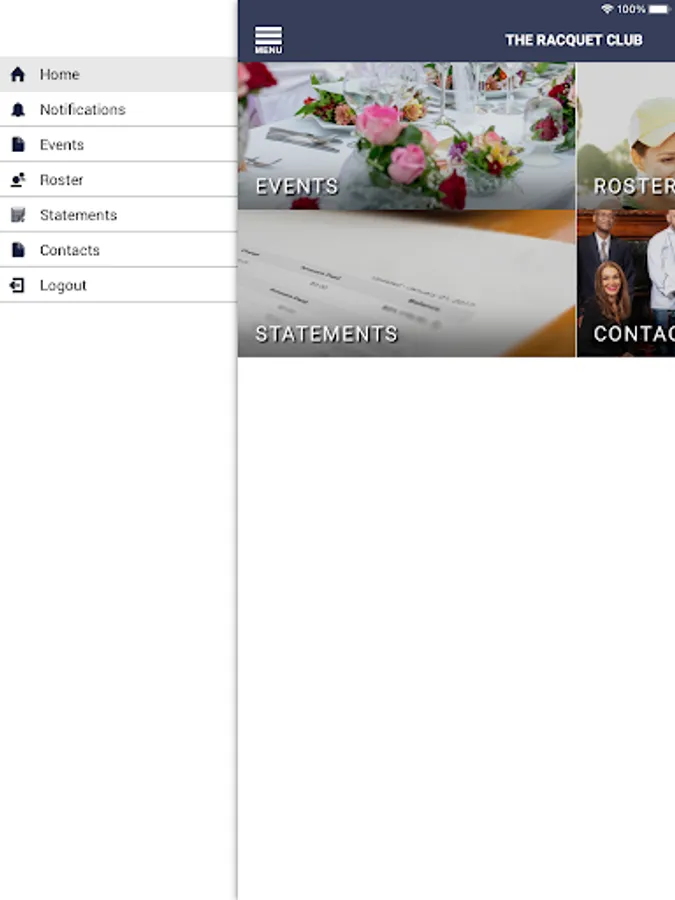 Delivering the ability to connect The Racquet Club to your mobile device. The Racquet Club app provides members with the ability to view their Statements. Use the Roster to connect with other members and receive notifications on upcoming club events, all by the way of your handheld or tablet.