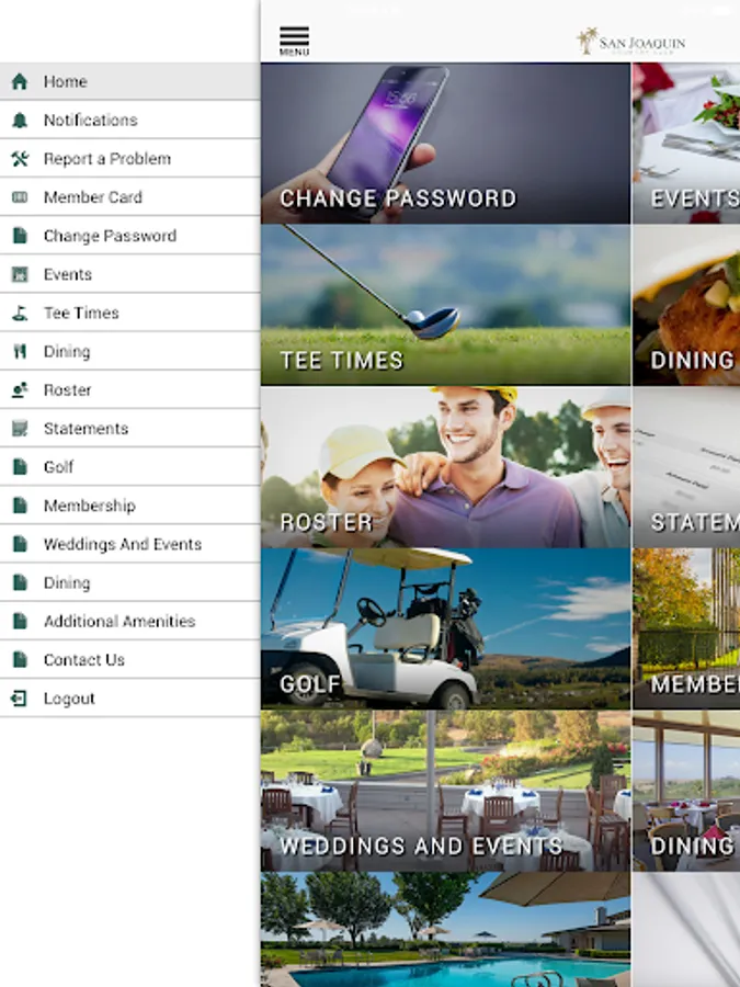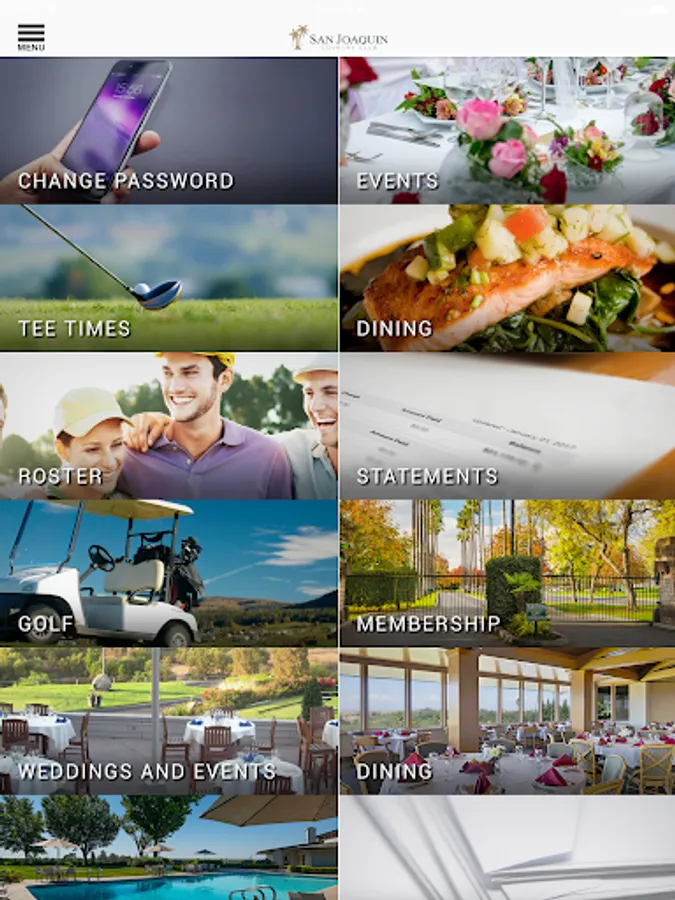 Connect San Joaquin Country Club to your mobile device. The SJCC app provides members with the ability to view their statements, make dining reservations and even make Tee Times. Use the Roster to connect with other members and receive notifications on upcoming Club events, all by the way of your handheld or tablet.
