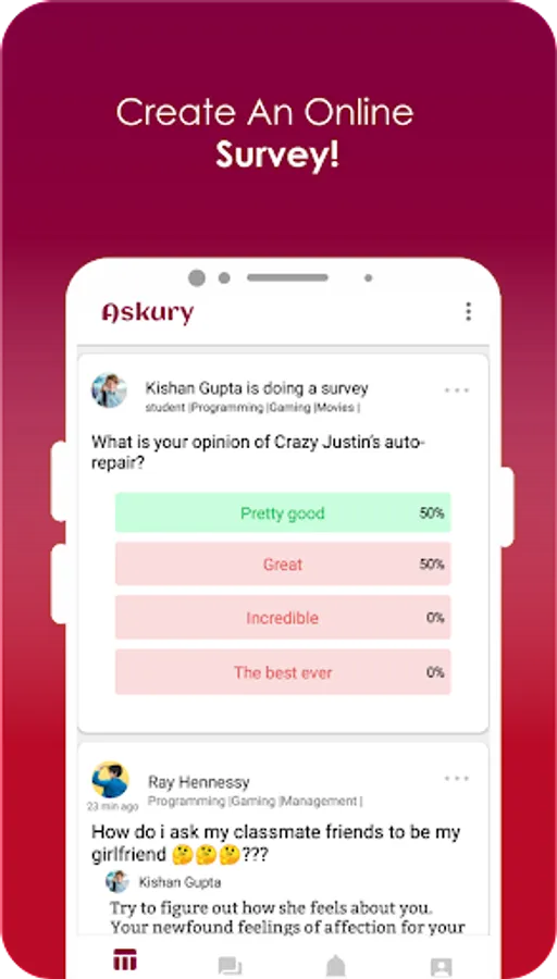 With askury you can do survey by just doing some simple step.You can also do image poll(Photo poll) in just one click.you can share your knowledge to others.