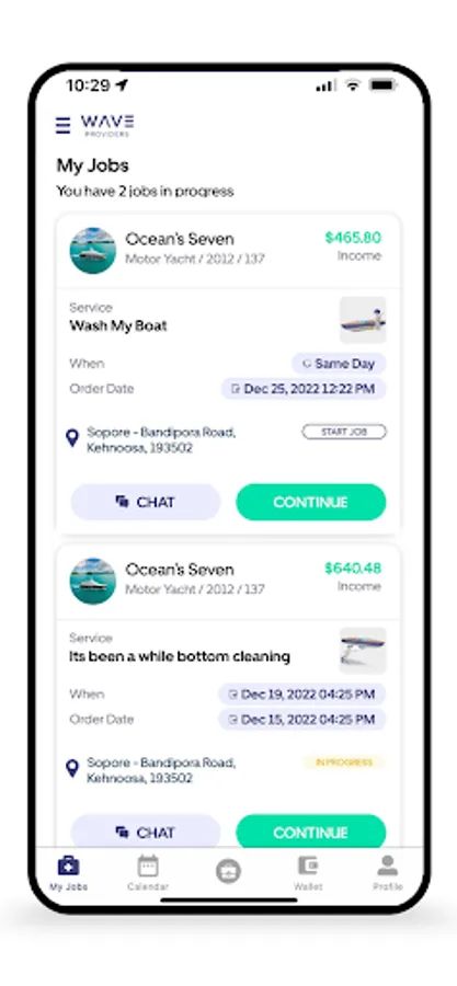 o WAVE provides mobile solutions to help maximize your time management and lead generation as a service provider. The app features the following functionalities: accept orders, integrated calendar, GPS tracking, order history, instant messaging, and integrated wallet.