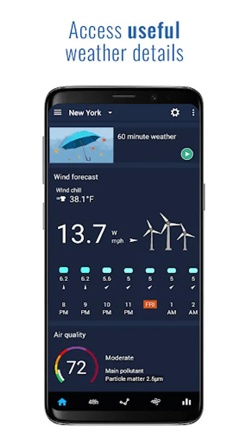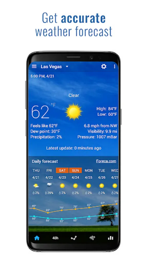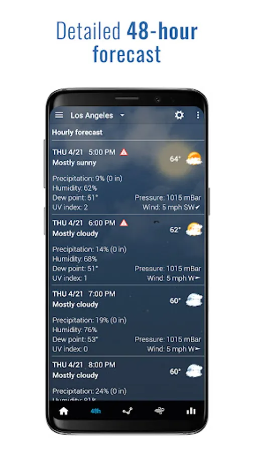 The app provides weather forecasts for your current location or any other location worldwide. You can add up to 10 locations and check the weather and time for any place in the world.