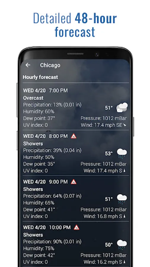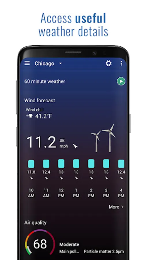 - Hourly forecast, wind forecast, UV index for the coming 12 hours