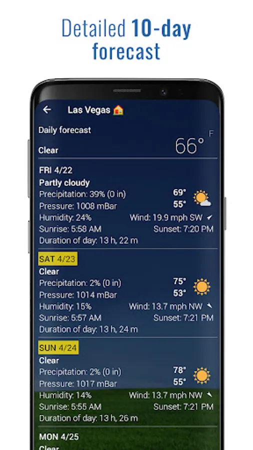 - Display weather forecasts for any other place in the world (up to 10 locations)