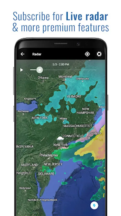 - Notifications for selected weather conditions, temperature ranges and strong winds