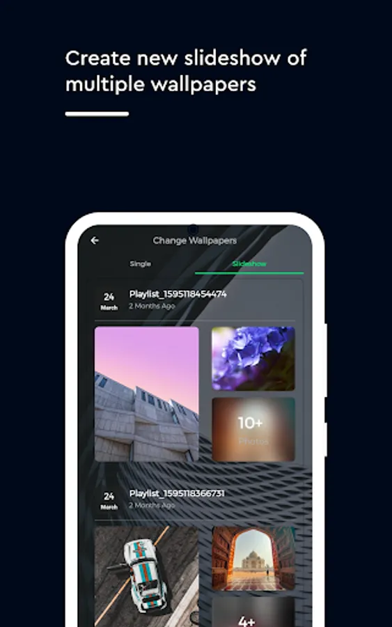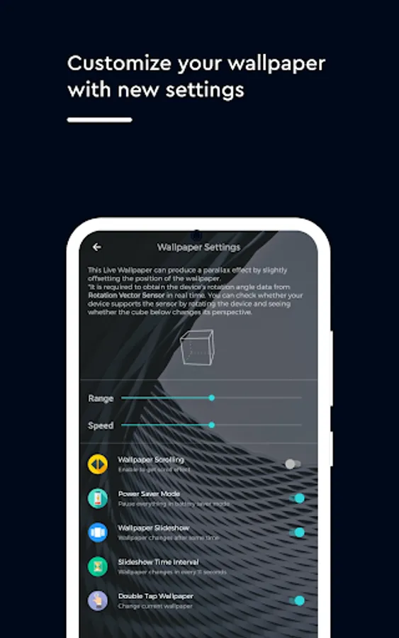 This Live Wallpaper can produce a parallax effect by slightly offsetting the position of the wallpaper. You can create new playlists with multiple wallpapers from the device and activate whenever you want.