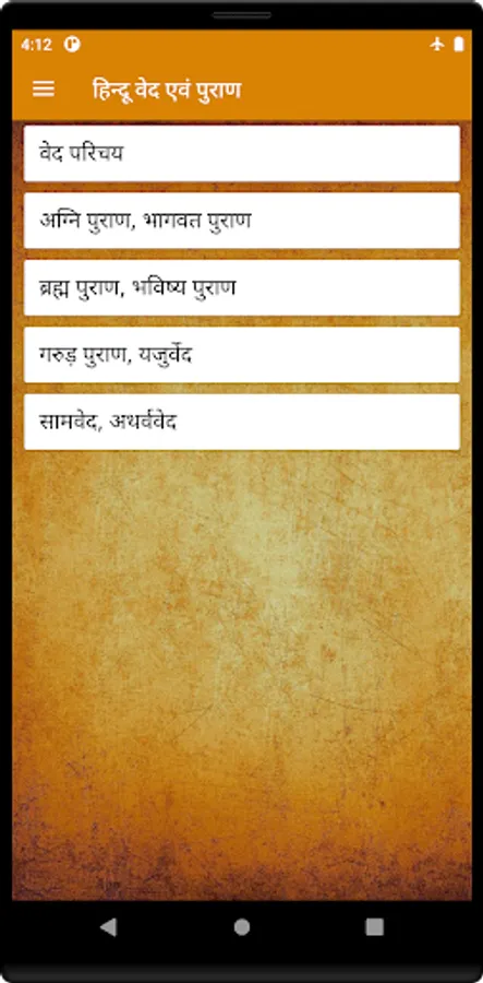 वेद के विभाग चार है: ऋग्वेद, यजुर्वेद, सामवेद और अथर्ववेद।