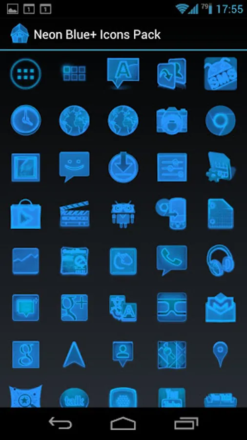 Neon Blue+ Icons Pack for Launch-X, ADW Launcher EX, Go Launcher EX and LauncherPro.