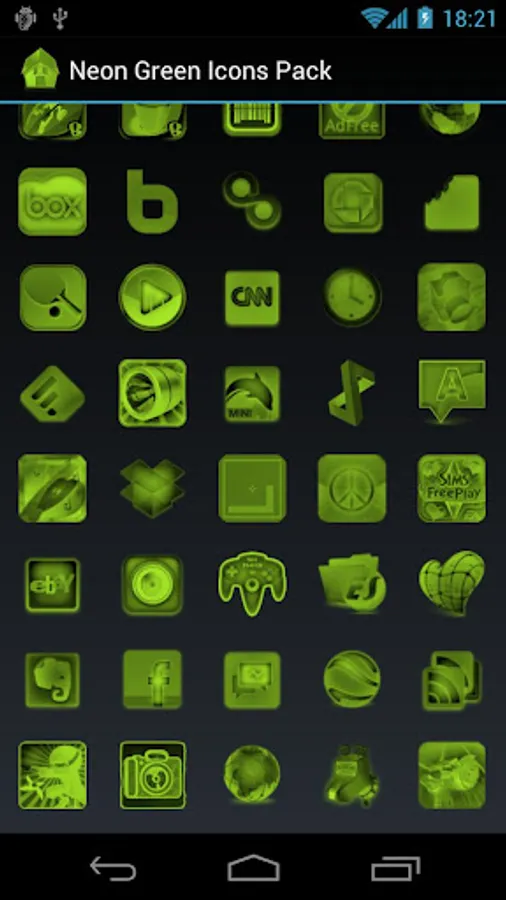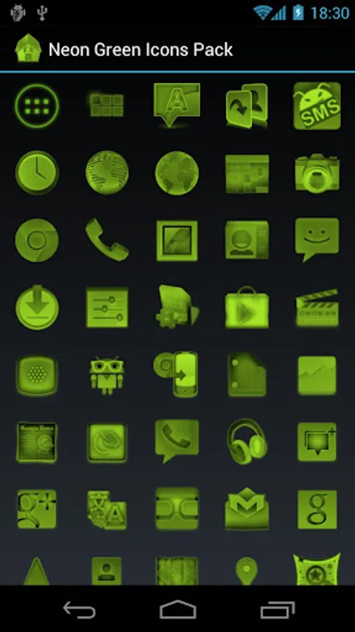 Neon Green Icons Pack for Launch-X, ADW Launcher EX, Go Launcher EX and LauncherPro.